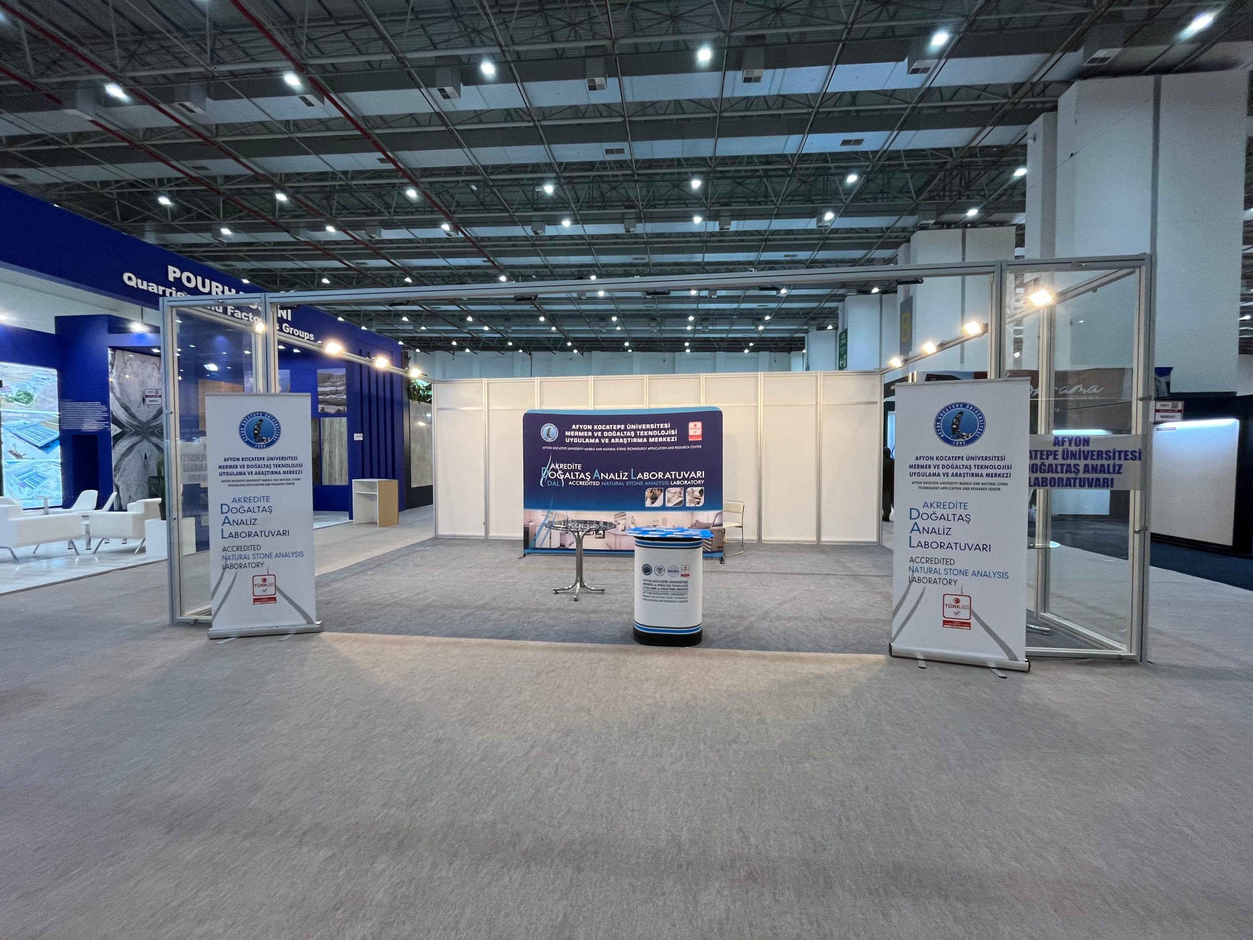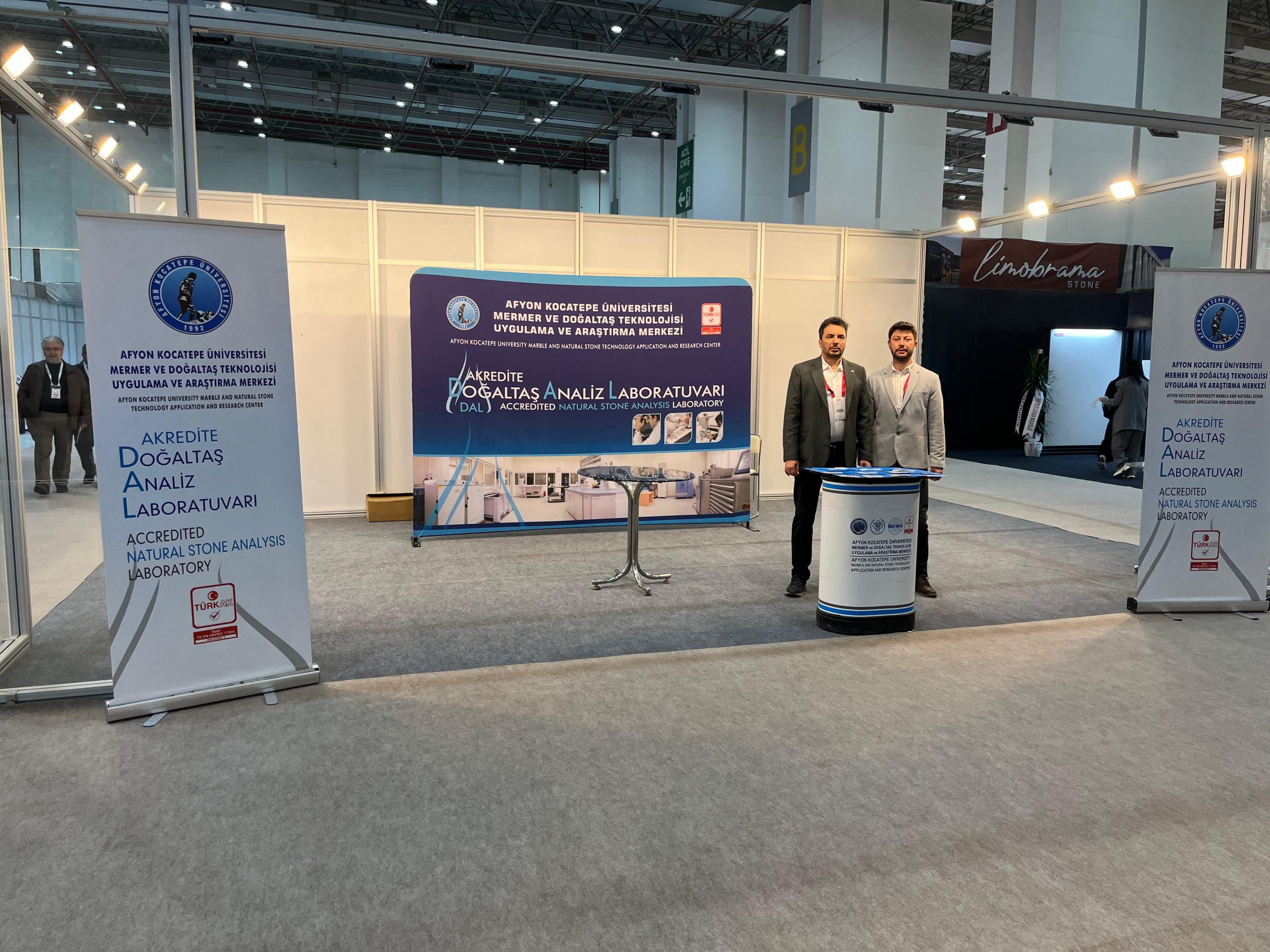 Yerli ve yabancı binin üzerinde katılımcının yer aldığı 14 – 17 Nisan 2026 tarihlerinde Fuar İzmir’de düzenlenen ve dünyanın en önemli mermer fuarlarından birisi olan MARBLE İZMİR Uluslararası Doğaltaş ve Teknolojileri Fuarında, Akredite Doğaltaş Analiz Laboratuvarının mermer sektörüne verdiği destekler tanıtılarak sektör temsilcileri ve firmalara laboratuvarın tanıtımı yapılmış ve görüş alışverişinde bulunulmuştur.